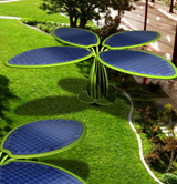 LOTUS, sistema modulare di eco-arredo urbano costituito da sedute e pensiline fotovoltaiche per parchi e aree di sosta. LOTUS E-BIKE, bicicletta elettrica a pedalata assistita. OCTOPUS, lampada da terra. Design by Giancarlo Zema.